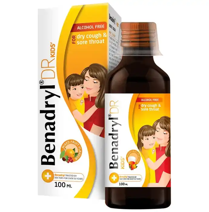 Benadryl DR Kids Syrup Mixed fruit flavour Alcohol Free