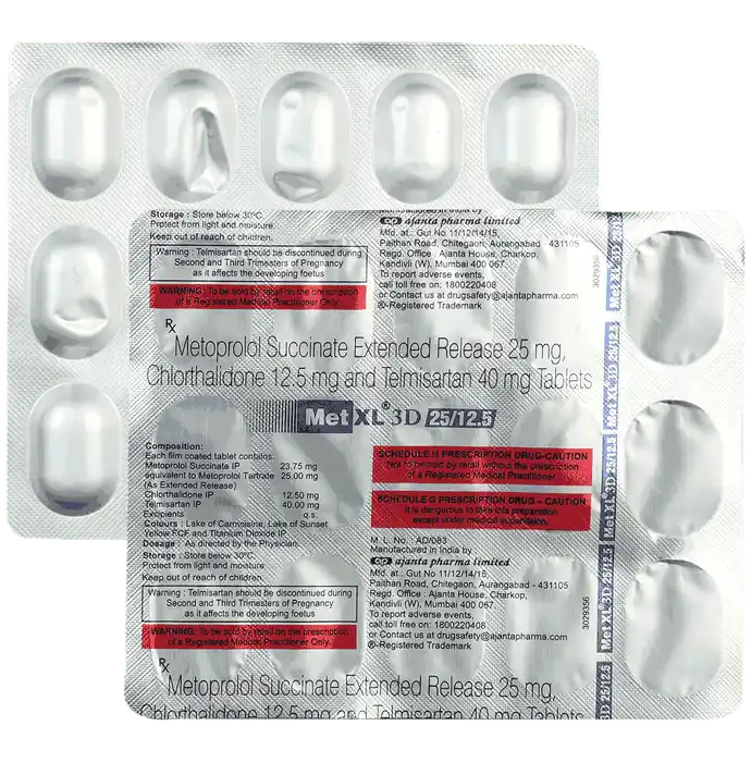 Chlorthalidone (12.5mg) + Metoprolol Succinate (50mg) + Telmisartan (40mg)