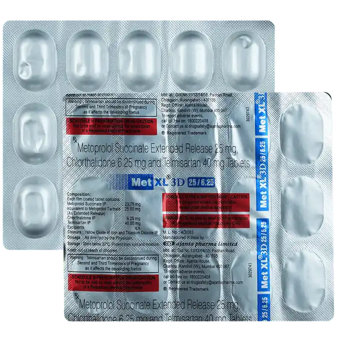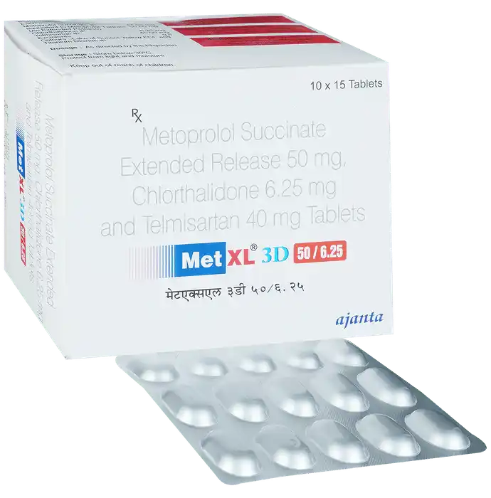 Chlorthalidone (6.25mg) + Metoprolol Succinate (50mg) + Telmisartan (40mg)
