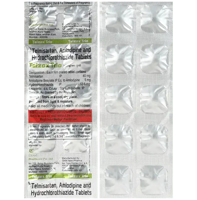 Telmisartan (40mg) + Amlodipine (5mg) + Hydrochlorothiazide (12.5mg)