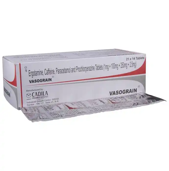 Caffeine (100mg) + Ergotamine (1mg) + Paracetamol (250mg) + Prochlorperazine (2.5mg)